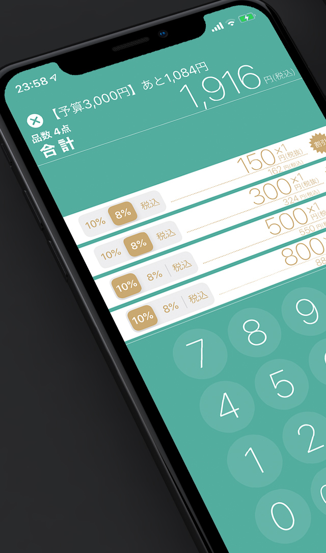 そんな時、商品の税抜き価格をこのアプリに入力するだけで、レジに行く前に消費税込みの合計金額がすぐに分かります。